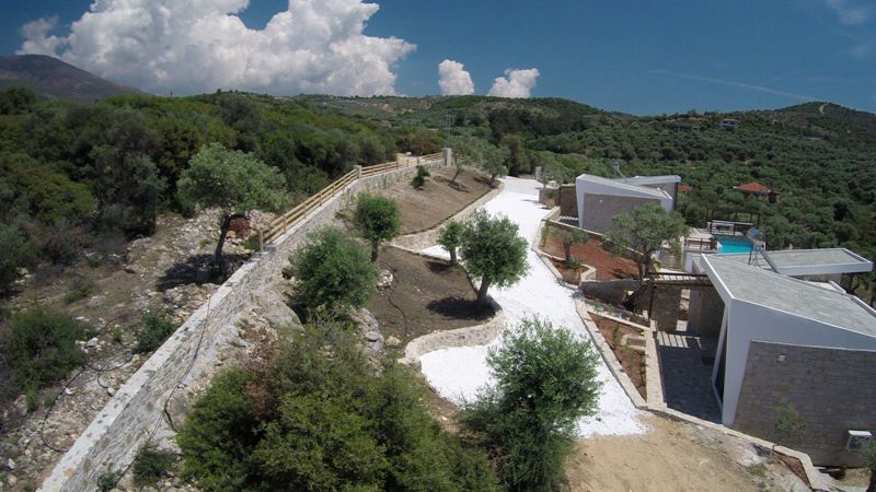 Villen auf einem Hügel mit Olivenhainen, in einem Plot