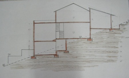 Chosen to construct the building on 2 levels to diminish the volume of the house and harmonize with the environment.