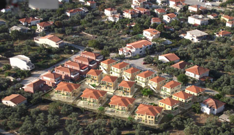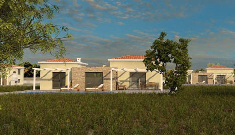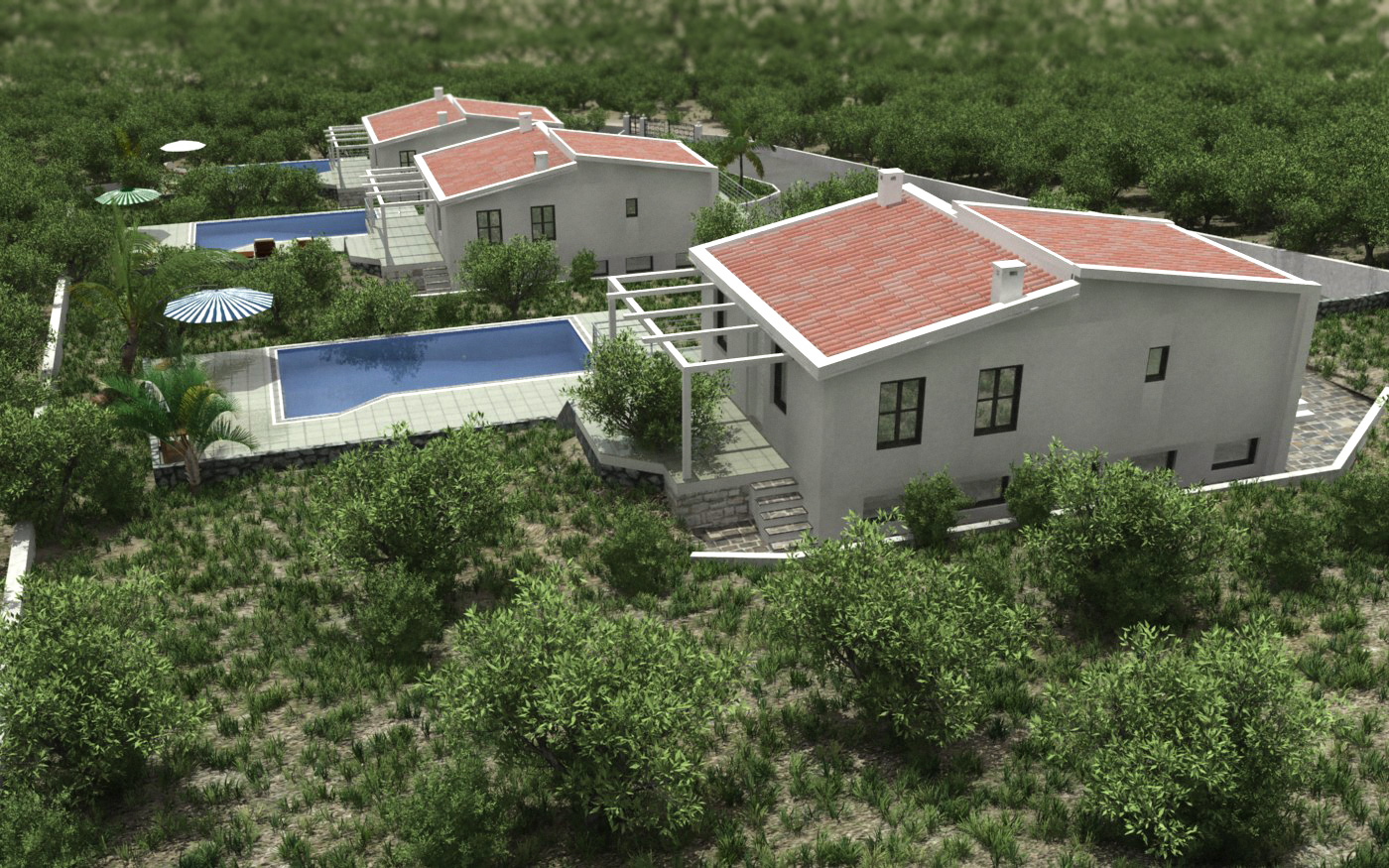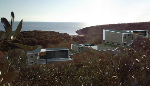 lie three luxury villas 140 sq.m., surrounded by olive and pine trees,